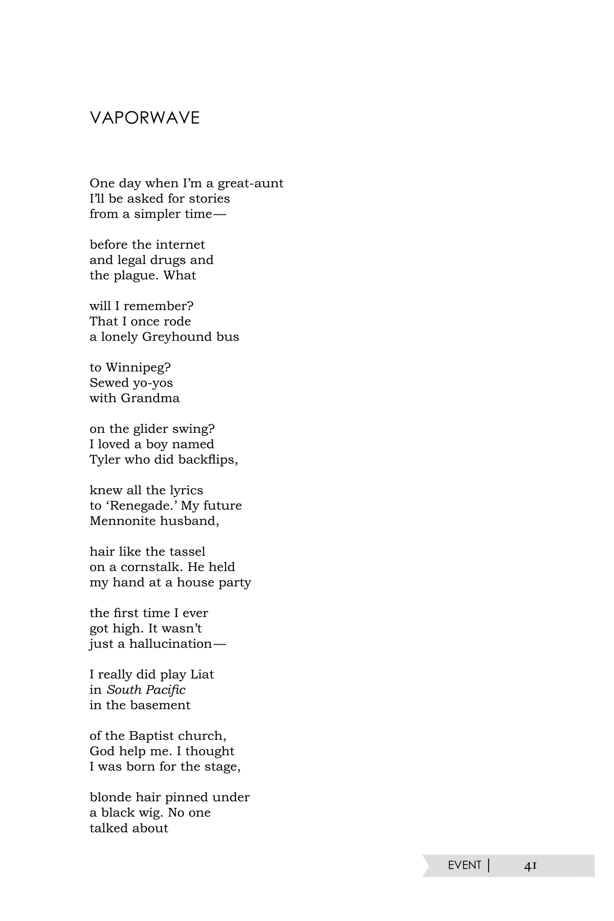 ELLIE SAWATZKY is the author of None of This Belongs to Me (Nightwood Editions, 2021). Her poems have appeared most recently in The Walrus, Canadian Literature and SAD Mag. She lives in Vancouver, where she works as an editor and poetry teacher. Find her at elliesawatzky.com and @elliesawatzky.